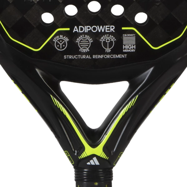 The new ADIPOWER 3.2 is the continuation of a padel racket made to win. Get superior performance thanks to its 15K carbon surface, added to the the EVA High Performance memory rubber, provides a great generation of power in all your shots. The DUAL EXOSKELETON technology covers with carbon fibers all the heart of the racket providing a great rigidity that translates into a huge power. The roughness of the SPIN BLADE technology allows enormous access to spin on all your shots. The carbon reinforcements intertwined throughout the structure thanks to STRUCTURAL REINFORCEMENT technology allows a high resistance to torsion even in your most aggressive shots so that you only worry about winning. It’s diamond oversize shape will increase the reception area, obtaining a substantial increase in power and an important improvement in getting balls off-center. The sweet spot on top offer extra power for certain shots such as the smash.
