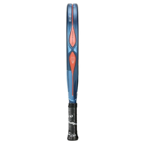 The outer core is finished in Glaphite, a special plating developed by Bullpadel which mixes elastic glass fibres with other carbon fibres to obtain a comfortable touch but reactive enough for a fast game. The inner core is made of MultiEva, and its 100% carbon fibre CarbonTube frame. It includes the 3D Grain rough surface of polygonal shape, which increases the spin potential.