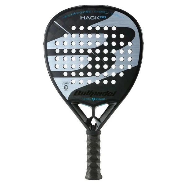 The Bullpadel Hack 03 is a diamond shaped racket, designed for maximum power, high performance but without lacking control. It is ideal for advanced players.