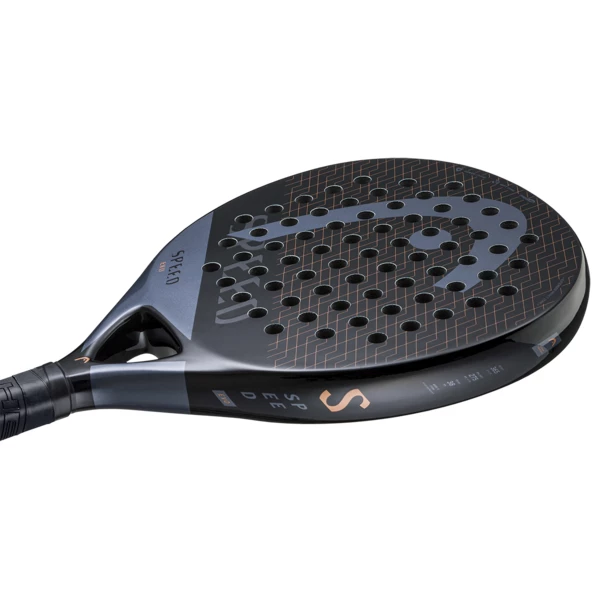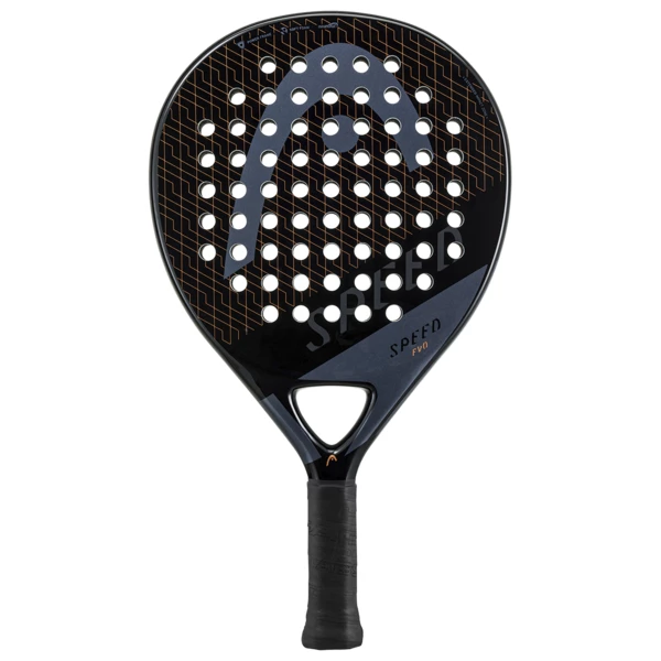 The Head Evo Speed offers a combination of power, comfort and playability. It has an over-sized teardrop head shape to increase the sweet spot size for easier playability. It uses comfortable soft foam, and Innegra technology to reduce vibrations and increase hitting stability.