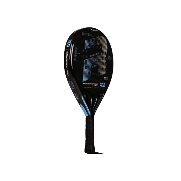 Surface: New for 2023 3D Hex Weave. The anniversary model plan is made of 0.5 aluminised glass fabric increasing the durability of the racket. Core is 100% carbon tissue.