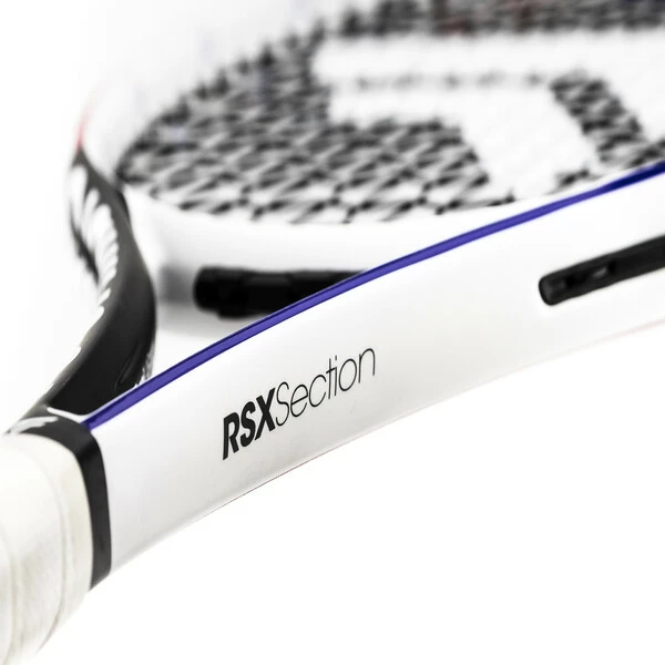 The new RS Section improves on the traditional control orientated square section through a redesigned 5-sided frame geometry with specific angles to reduce frame twisting allowing for increased stiffness for more power and precision to hit those winning shots, but at the same time offer a softer, more comfortable feel on impact, giving the player more confidence in their shots. The new angled geometry also provides a smoother and better connection between the head of the racket and the reworked yoke section, increasing both stability of the frame through the swing to ensure you hit that sweet spot, and the ball contact time for more comfort.